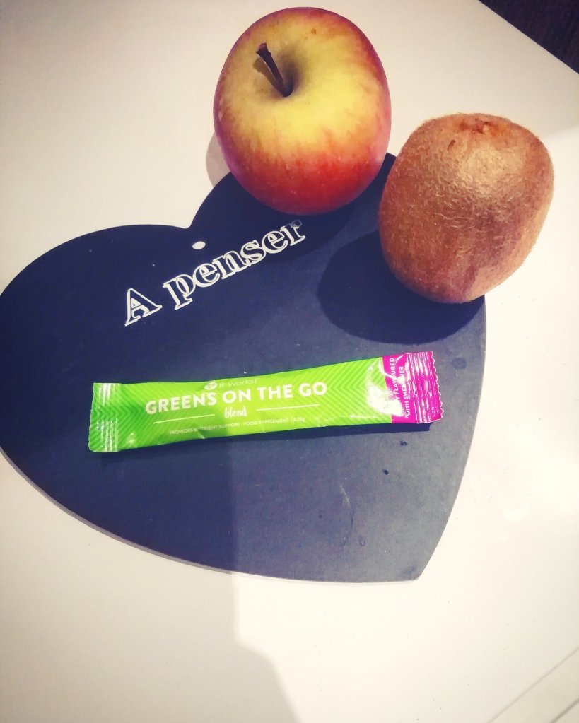 Le green on the go, ce sont des petits sachets en poudre à verser dans une boisson fraîche de votre choix (eau ou jus de fruits), et à consommer chaque matin ou au cours de la journée, selon les envies 🙂